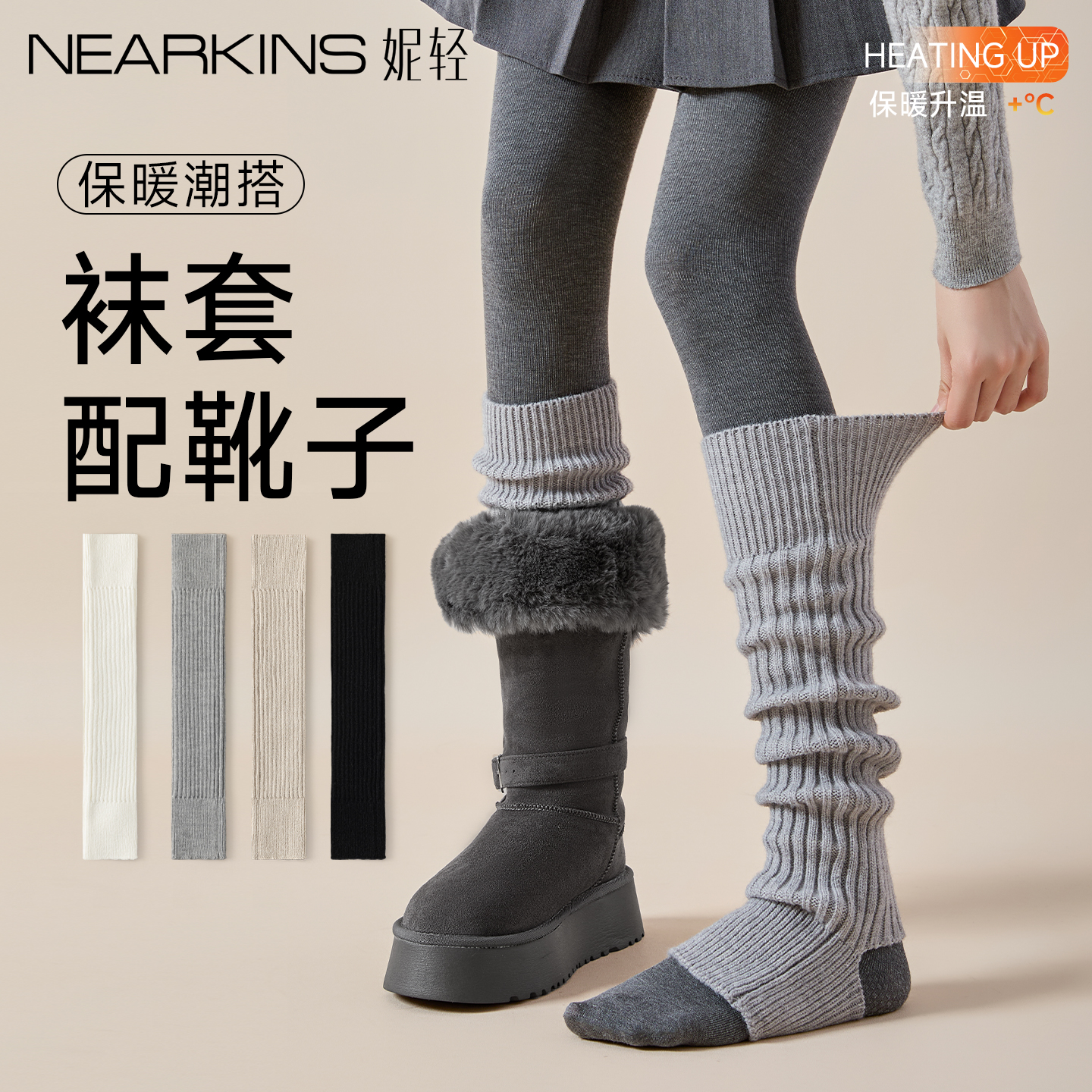 袜套配靴子堆堆袜女秋冬加厚踩脚灰色小腿套长筒保暖显瘦搭雪地靴