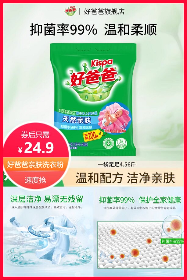 秒杀直降10元+下拉详情淘金币抵扣1.73元+88vip省1.25元+限时红包2元后约19.92元,叠加消费券200-25更实惠!24小时抑菌,提高衣服抵抗力,亲肤无刺激,大人小孩安心用,洗除螨虫,去异味,绿色速洁粒子,瓦解顽渍!易漂易清洗,无化学残留!