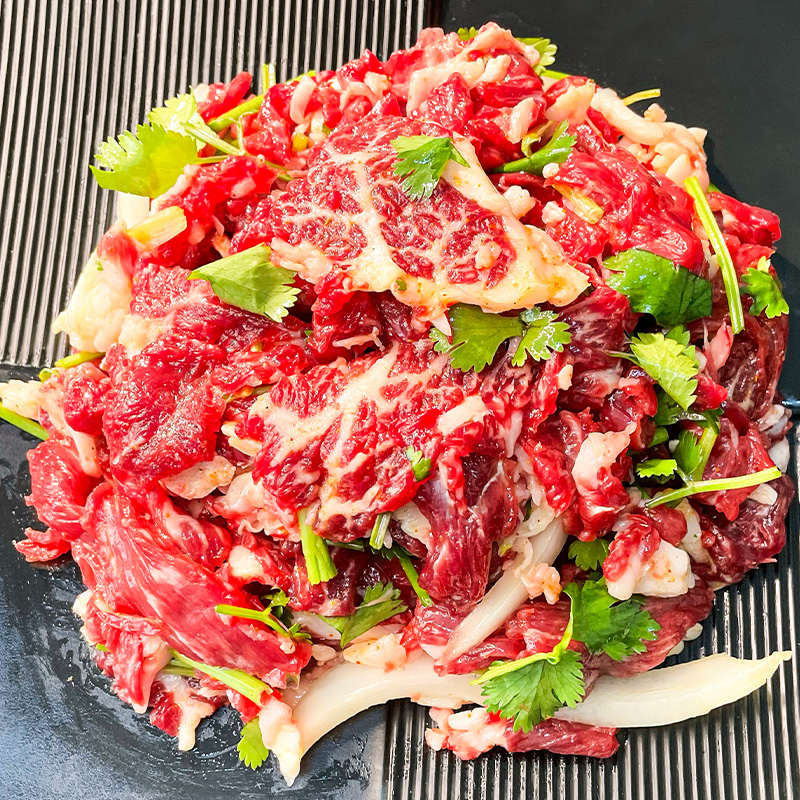 【送2包蘸料、2包酸菜】齐齐哈尔烤肉重磅来袭!新鲜牛肉半成品,东北风味拌肉料,家庭户外烧烤轻松开烤~韩式秘制腌制,肉嫩多汁,0添加,锁鲜直达餐桌!
