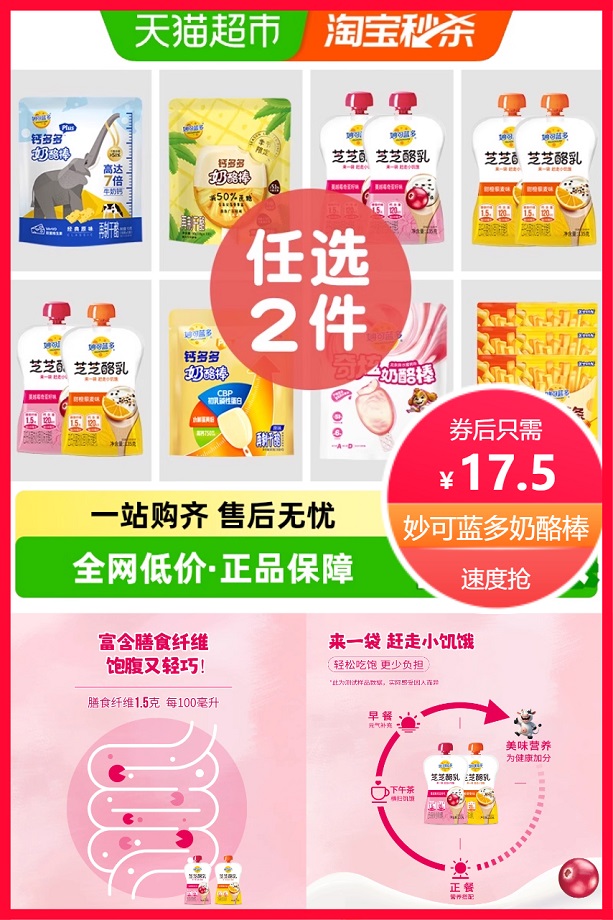 拍2件+券20元+秒杀直降2.3元后约17.5元,单件只需8.7元,多款任选,高钙+富含膳食纤维,奶香超浓郁!像吃冰淇淋的补钙神器,速!反馈的妙可蓝多组合 , 都是硬货奶酪棒/奶酪薯条/芝芝酪乳!
