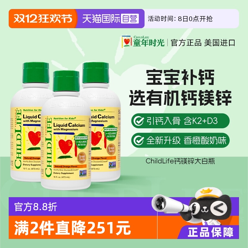 【送购物金30元】【ChildLife大白瓶~幼儿液体钙镁锌】荣获天猫国际受妈妈欢迎奖,维生素D3促进钙吸收,高效补钙,黄金搭配,口味好,柠檬酸钙,4倍补钙更高效。