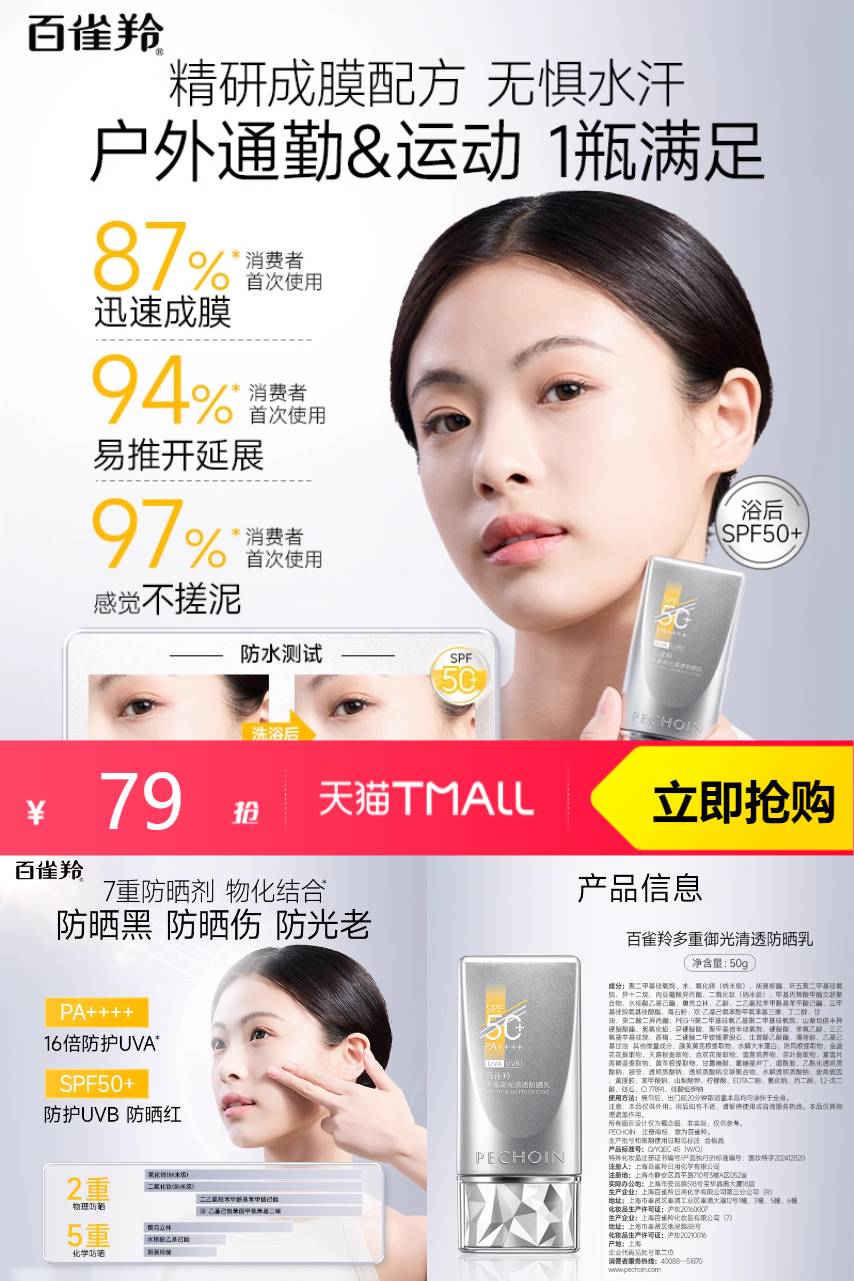【跳转淘金币页面,338-立减229-券30-淘金币1.5-88vip95折3.95=73.55元,叠加标题下方惊喜券到手更低。】(拍2)百雀羚银河防晒乳50g*2瓶,阳光不设限,高倍防光老,7重防晒剂,物化结合,防晒黑,防晒伤,防光老。