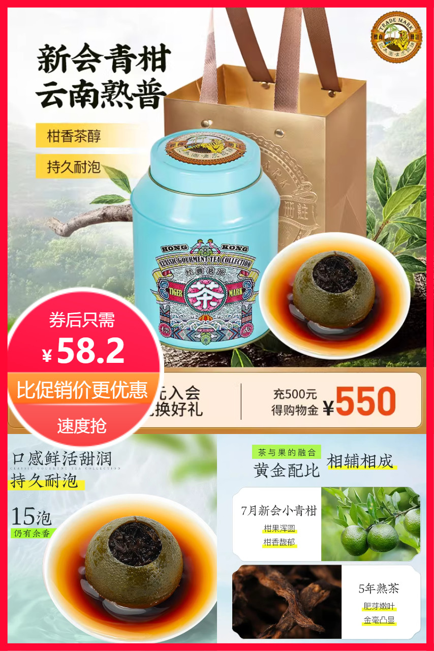 【88会员凑消费券到手更优惠】云南普洱,新会青柑,一颗十泡,畅饮一天,口感醇厚,鲜爽兼备,自饮送礼,天然日光浴,全程阳光生晒!