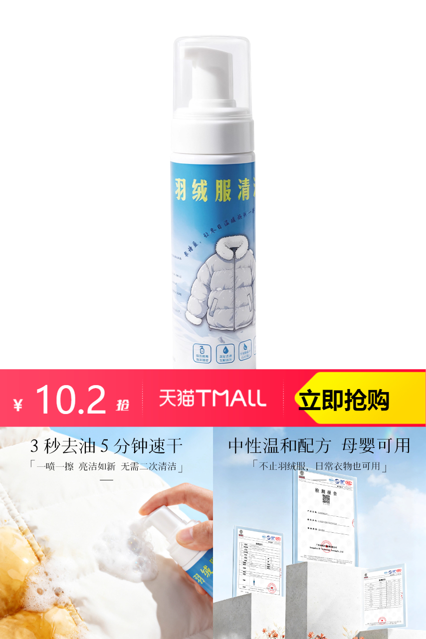 泉诗盈羽绒服免水清洁神器干洗剂200ml,泉诗盈羽绒服清洗剂免水洗即擦即穿清洁神器衣物干洗剂去污渍油渍,专为羽绒服设计,去污不留痕,速干即穿!不伤衣料、保暖性不变!