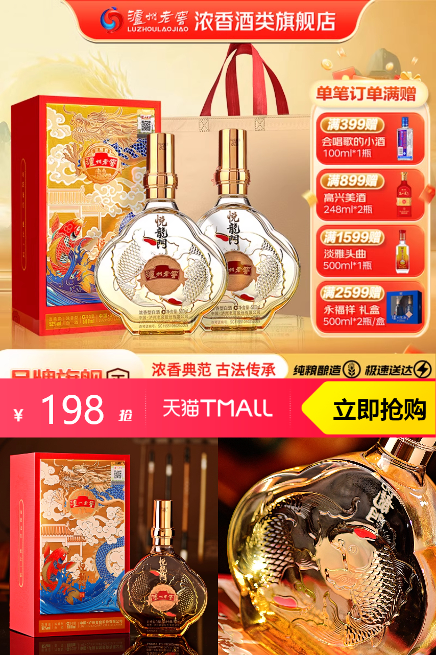 【原价248,超级立减50,首单减21,美食红包减11,到手仅需166,叠加淘金币抵扣5元,hp返5,实际到手156】悦龙门礼盒中的酒体细腻而丰富,轻轻摇晃,便可闻到其独有的芬芳。它像一曲经典老歌,旋律萦绕耳边,耐人寻味~