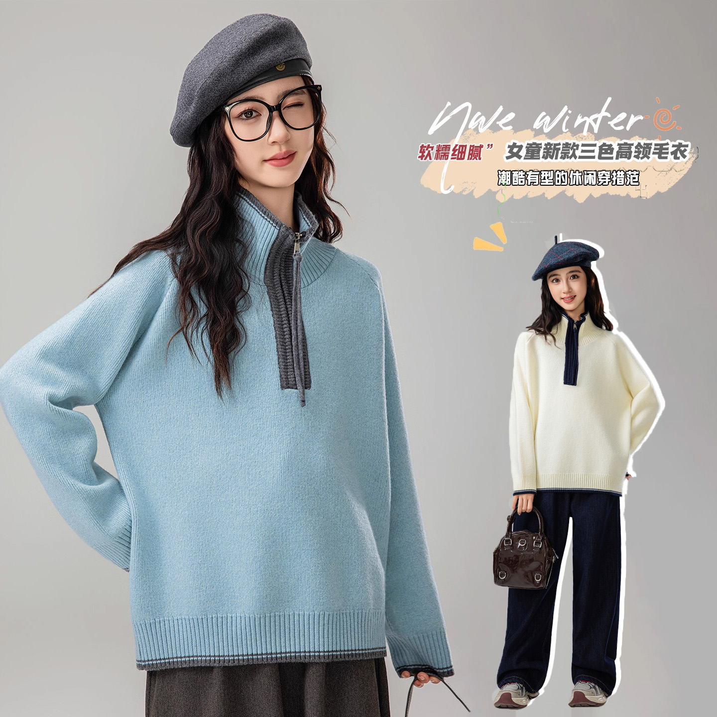 女童毛衣羊毛衫针织打底宽松初中生青少女2025年新秋冬装保暖上衣