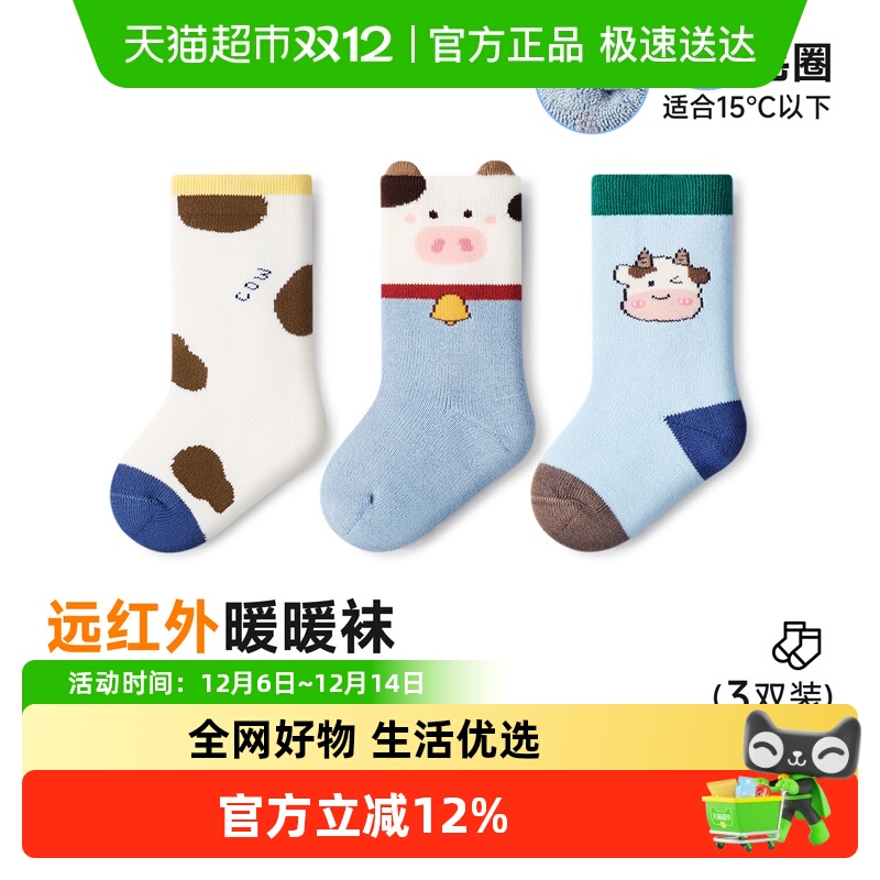 尼多熊2025宝宝袜子冬季加厚棉袜保暖毛圈袜婴儿袜儿童袜无骨秋冬