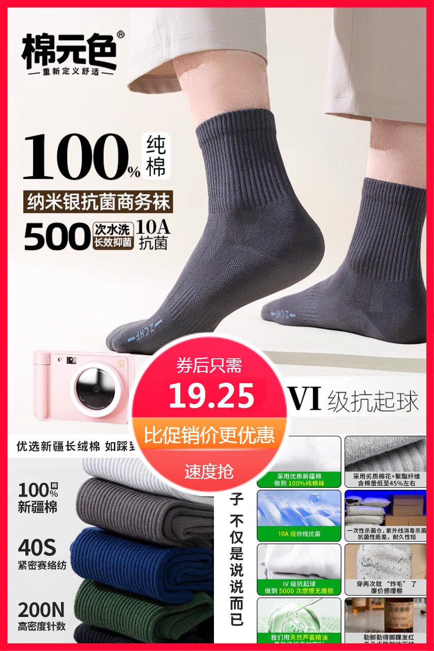 赠运费险【金币更划算】7A级纯棉材质!棉元色男袜采用高支精梳棉,柔软亲肤不闷脚,抗菌防臭科技加持,久穿依旧干爽舒适~中筒设计贴合小腿,吸汗透气+秋冬保暖双效合一,运动通勤都安心~