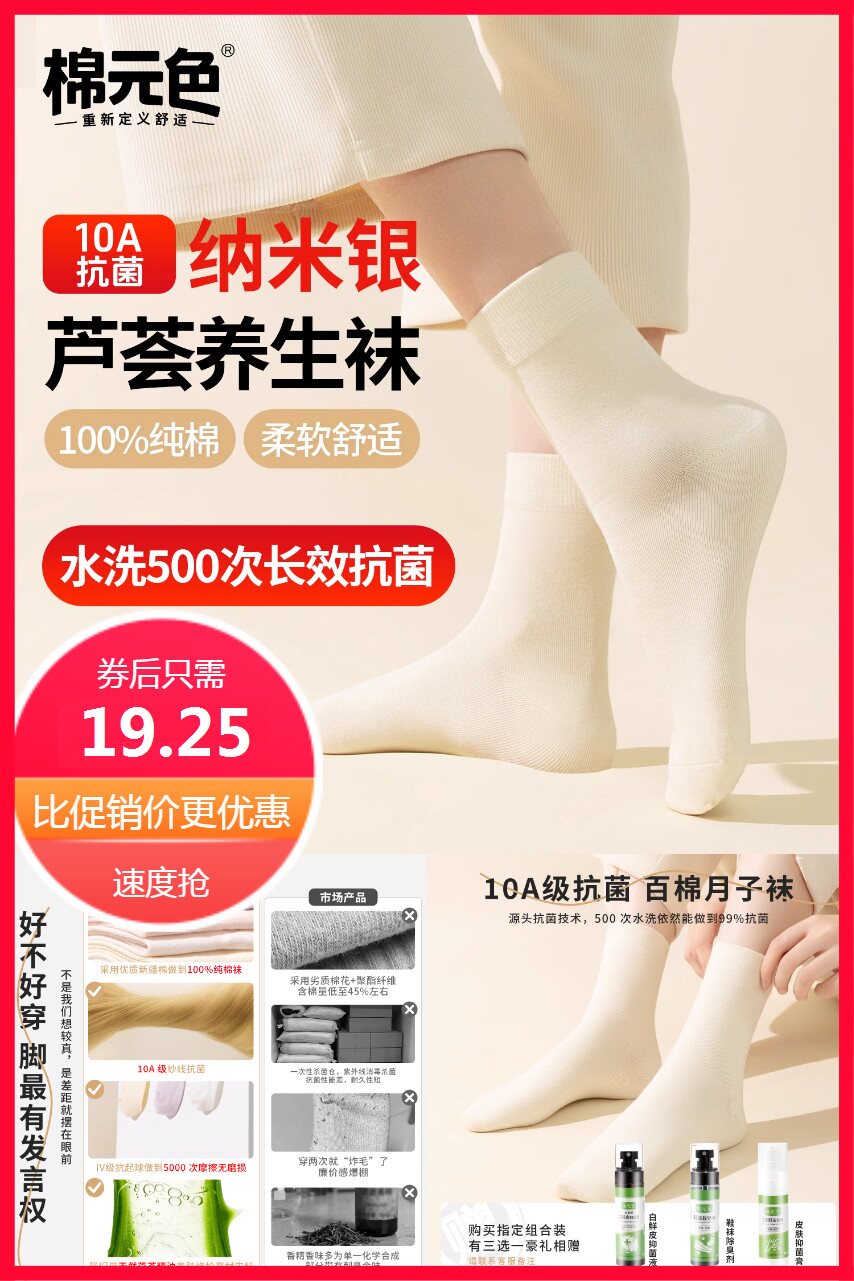 赠运费险【金币约18.4】棉元色纯棉女袜!10A级婴幼儿标准全棉材质,亲肤柔软不闷脚,秋冬保暖又透气~抗菌工艺+加厚中筒设计,月子期、日常穿都安心舒适,性价比超高!