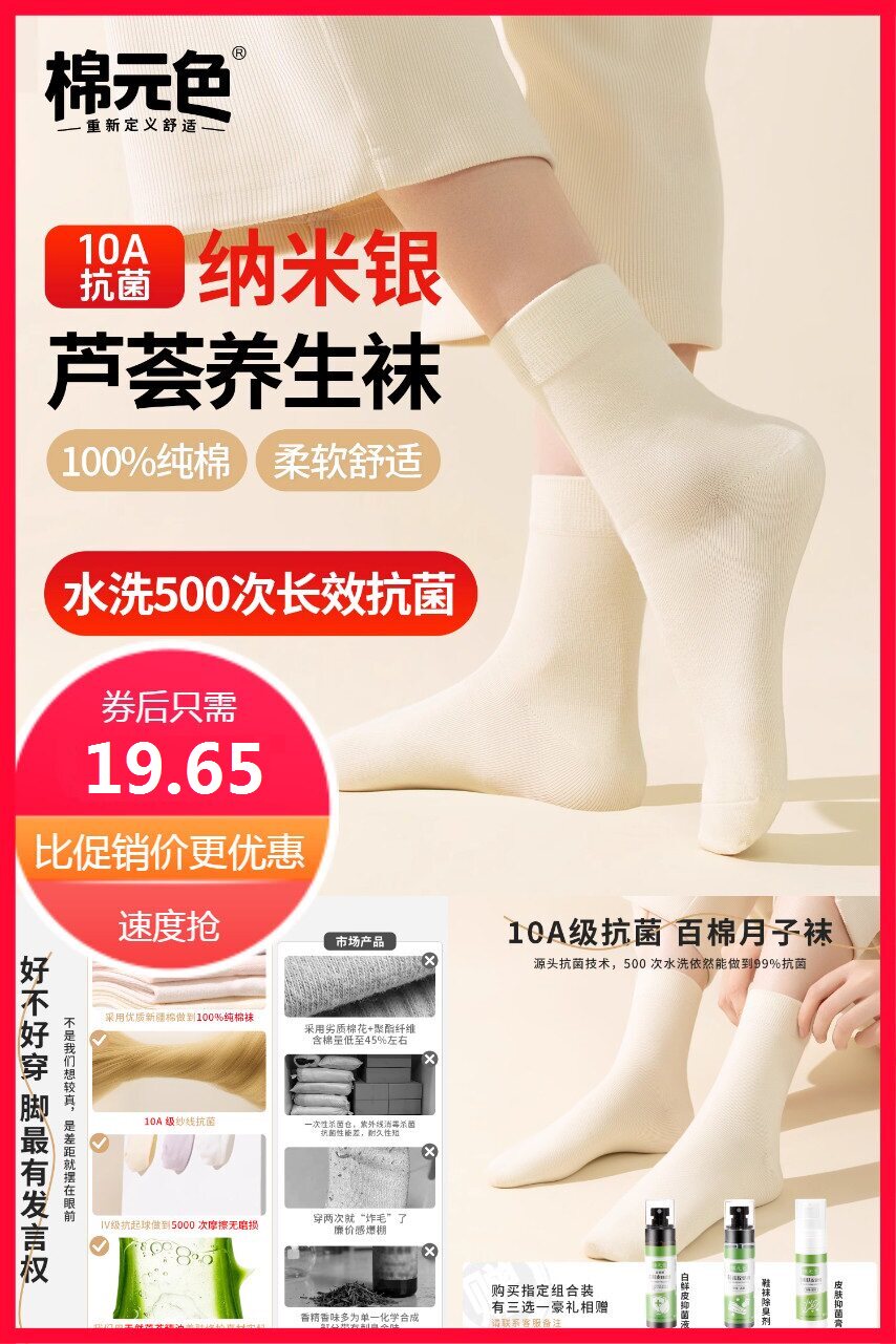 赠运费险【金币约更划算】棉元色纯棉女袜!10A级婴幼儿标准全棉材质,亲肤柔软不闷脚,秋冬保暖又透气~抗菌工艺+加厚中筒设计,月子期、日常穿都安心舒适,性价比超高!