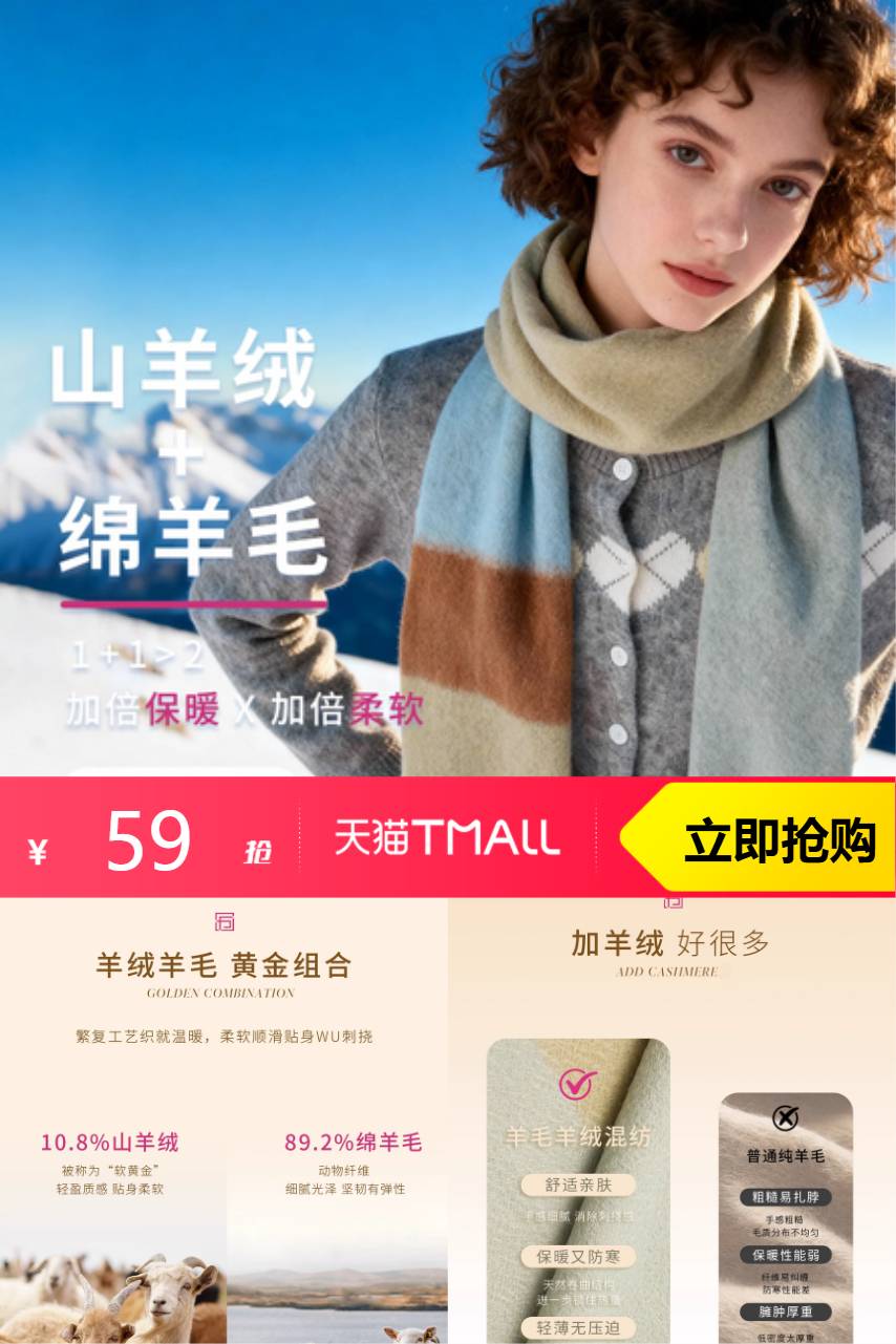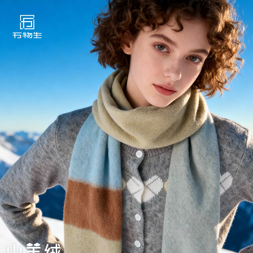 【淘金币抵扣3.87,到手价55.13】羊绒羊毛拼色围巾女生冬2025新款,繁复工艺织就温暖,柔软顺滑贴身WU刺挠~