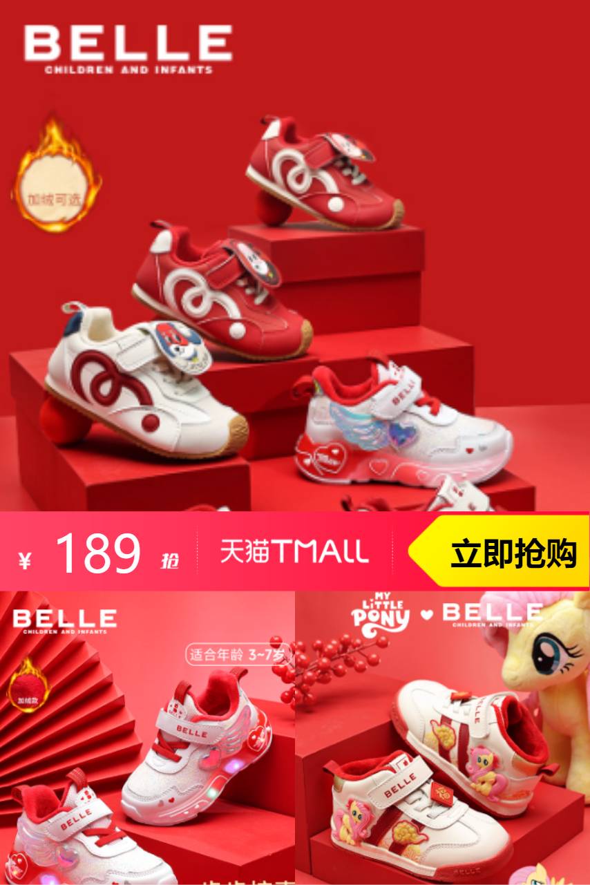 【凑消费券750-60减14.26元,88vip会员折上95折优惠减9.45元,到手价165.29元。】新年特惠,百丽童鞋红艳抢眼,价格超值,品质保障,舒适加绒,时尚百搭。