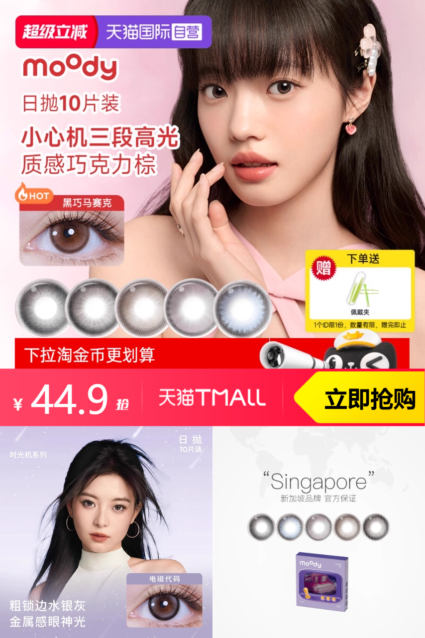 【原价79-满件优惠29.1-优惠券5-淘礼金2.24-淘金币3.12-88vip2.25=到手价37.29】日抛+彩色隐形眼镜!!宛若妈生黑!次元巴士!买即赠佩戴夹!!适合追求可爱、个性且注重品质和时尚的年轻人和孕妇!!天猫国际自营,购买价值高!!