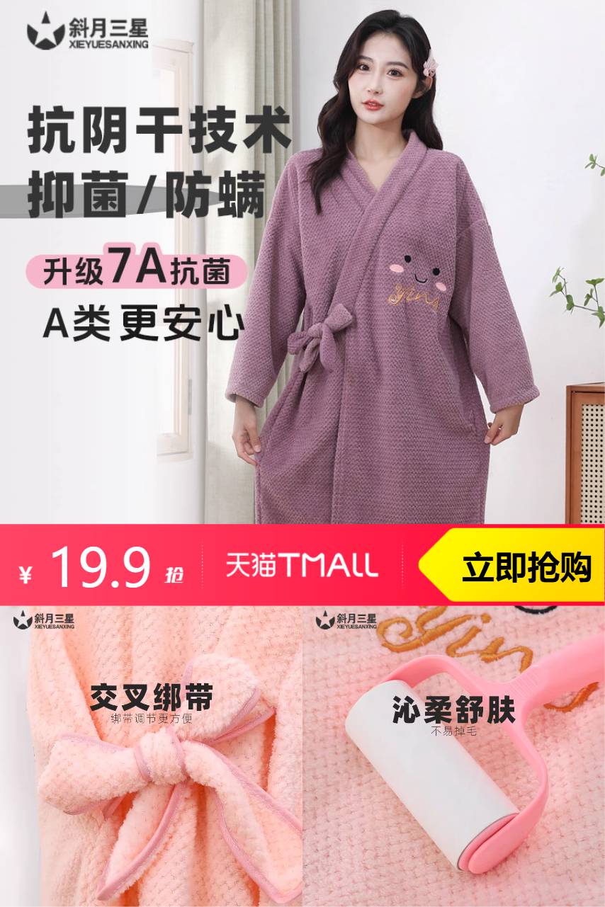 【官方补贴0.99,淘金币抵扣0.29,到手18.69】浴巾成人浴袍女可穿浴衣加厚吸水,穿上即刻干爽,亲肤暖绒绒7A抗阴干告别异味~