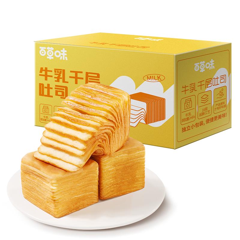 百草味牛乳千层吐司550g健康早餐代餐食品零食糕点心面包