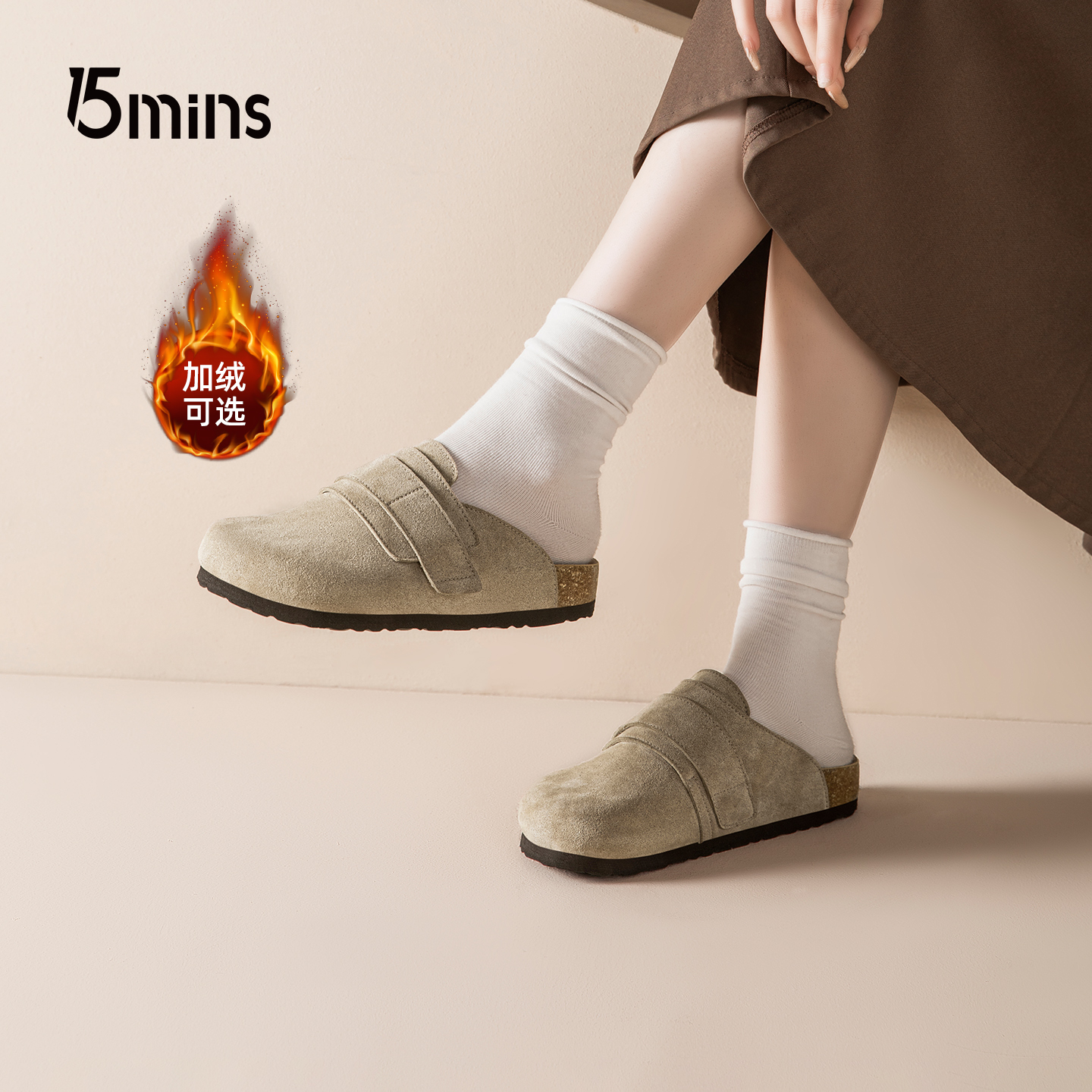 15mins勃肯鞋女款2025秋季新款外穿包头拖鞋男穆勒厚底情侣一脚蹬