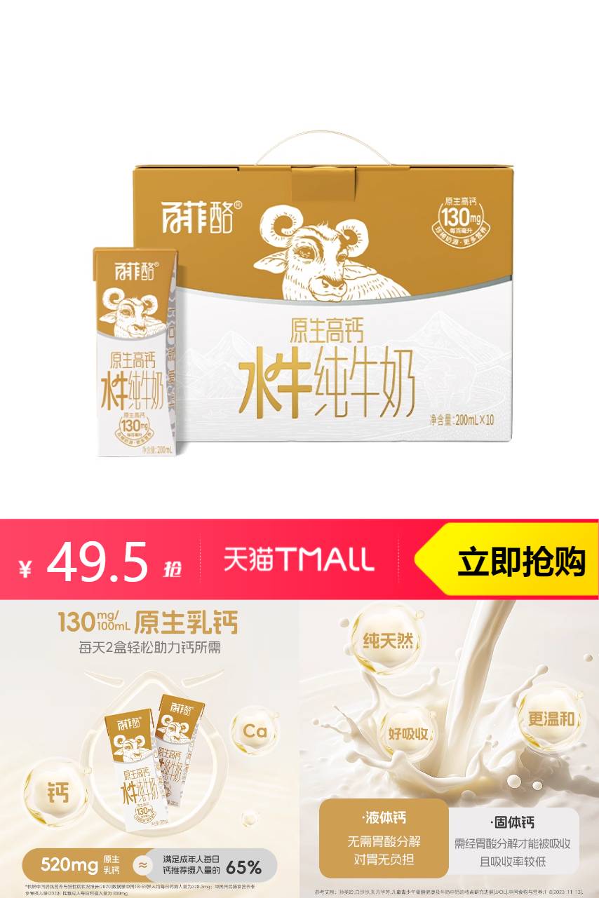 【下拉详情页进入百补频道,到手只要29.9】百菲酪旗舰店•原生高钙水牛纯牛奶200ml*10盒,百补到手价29.9元,折合一盒不到3元,每天两盒就可以补充钙摄入量!液体钙更好吸收!喝起来香香甜甜!回味只有牛奶的醇香!有点小贵但超好喝!!
