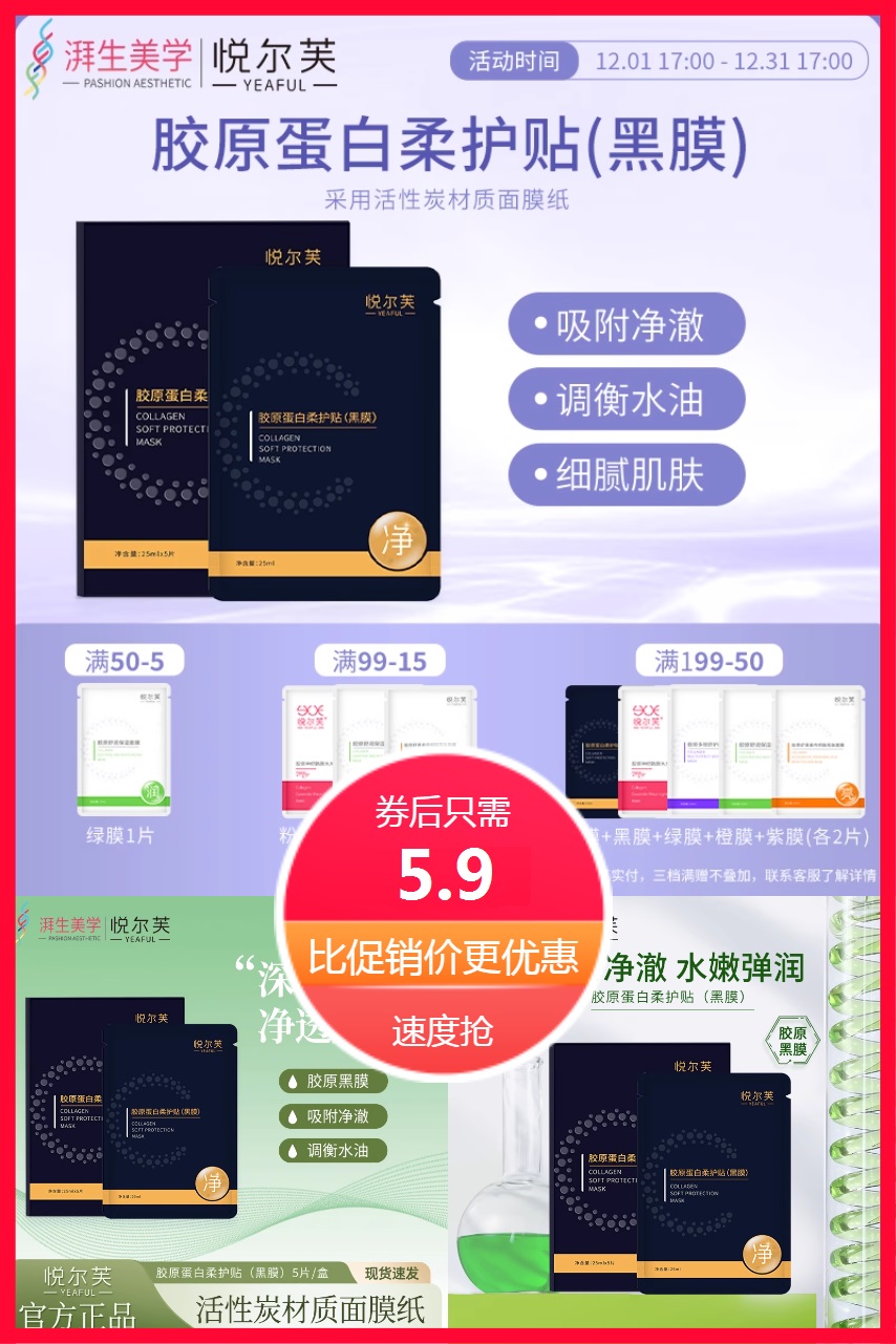 谁抢到算谁的【亏本冲5000单】悦尔芙小黑膜黑科技上线!活性碳膜布+三重胶原蛋白,深层渗透、柔润修护,敷完脸蛋嘭弹水光~高浓度精华不拔干,敏感肌友好,日常补水&熬夜急救双担当!