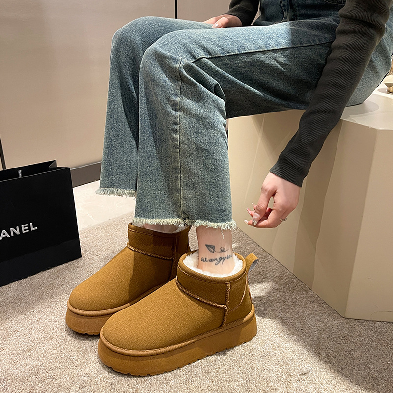 2025秋冬新款外穿东北加绒加厚雪地靴防寒保暖情侣简约百搭女棉靴