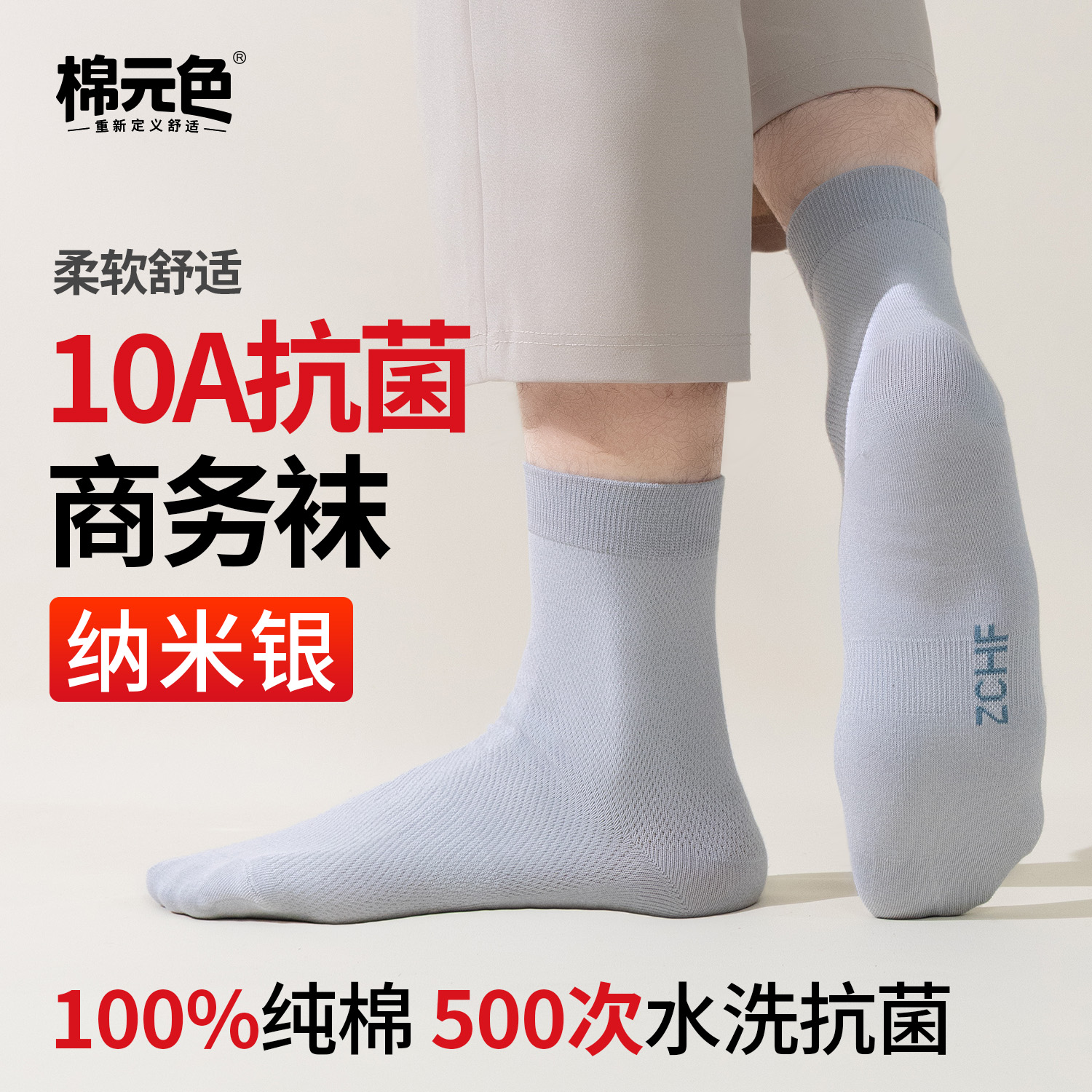 【棉元色】纯棉男士袜子商务款透气抑菌秋冬防臭10a抗菌2025新款