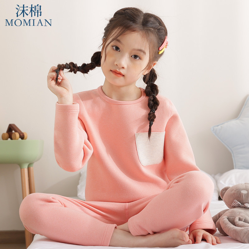 沫棉儿童保暖内衣男童女童加厚蚕丝羊毛秋衣秋裤套装宝宝内衣