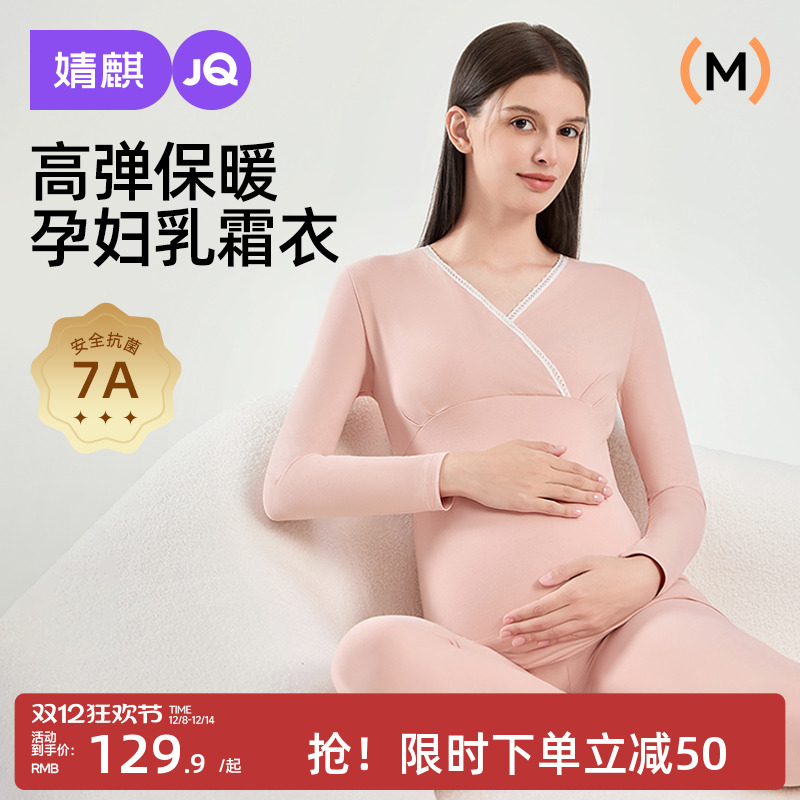 婧麒孕妇秋衣秋裤套装保暖内衣孕期打底产后哺乳喂奶大码月子服冬
