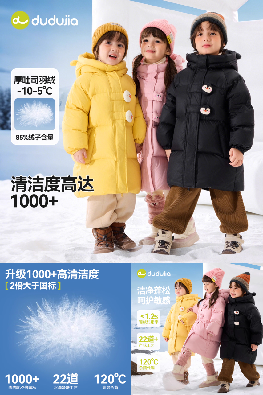 【杜邦三防】儿童羽绒服嘟嘟家冬季长款童装,清洁度高达1000+高充绒量,洁净蓬松,呵护敏感!4色可选,品质保证,速抢!