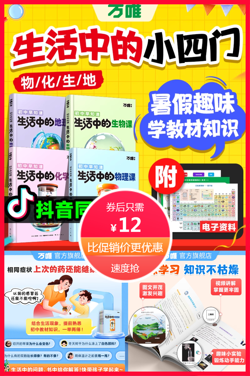 万唯生活中的小四门物化生地启蒙书,小初衔接必备,老师推荐,科普百科,趣味漫画,会考训练,全方位覆盖小四门知识,让孩子轻松掌握初中课程!
