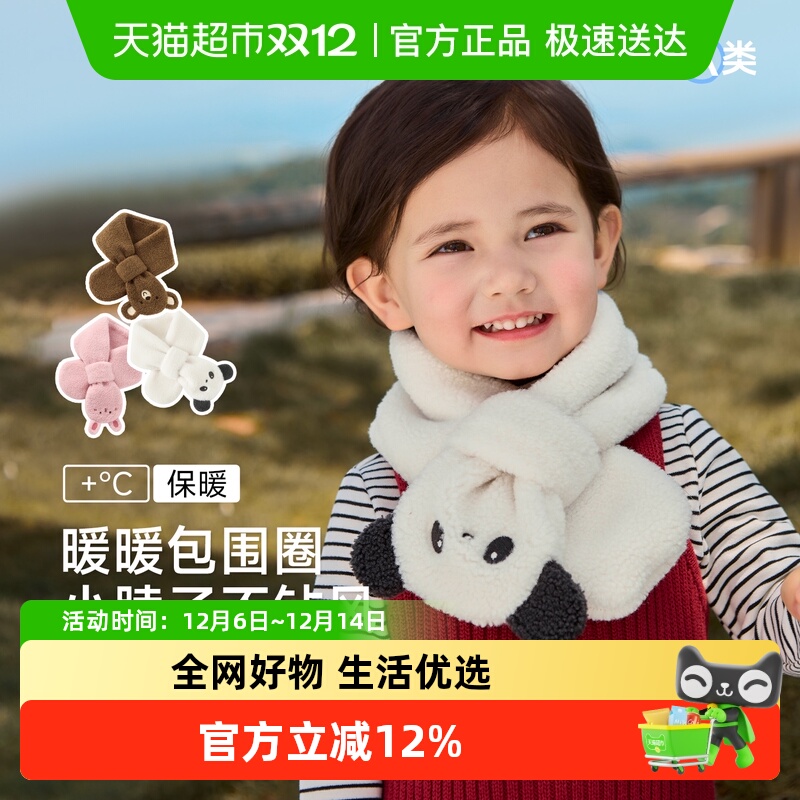 尼多熊2025儿童毛绒围巾男女童防风穿插式护颈巾保暖宝宝秋冬围脖