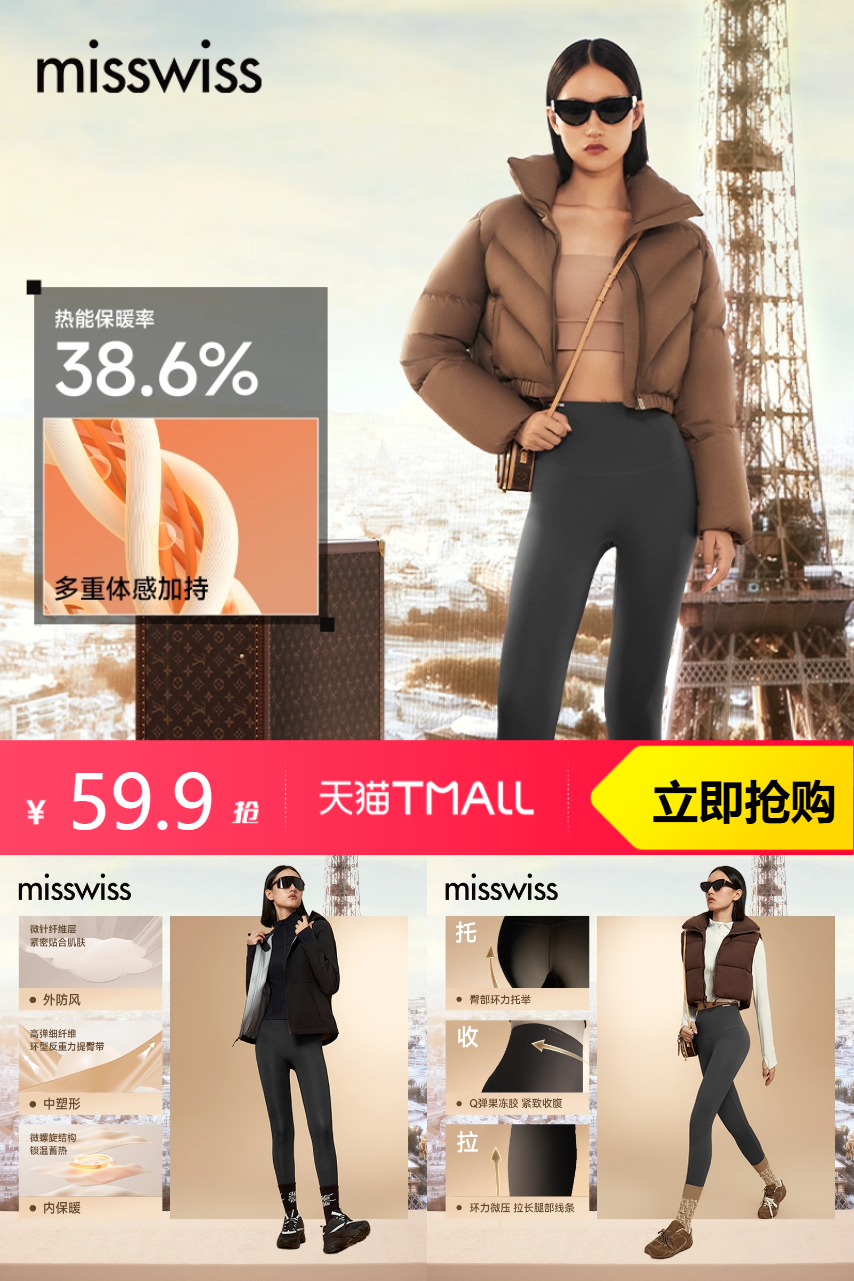 【10点开始有18%户外礼金抵扣10.7,淘金币抵扣4元,叠消费券到手39左右;多款可选合集!】MissWiss鲨鱼裤女外穿秋冬加绒款,多重体感热能科技,全域环力塑形~