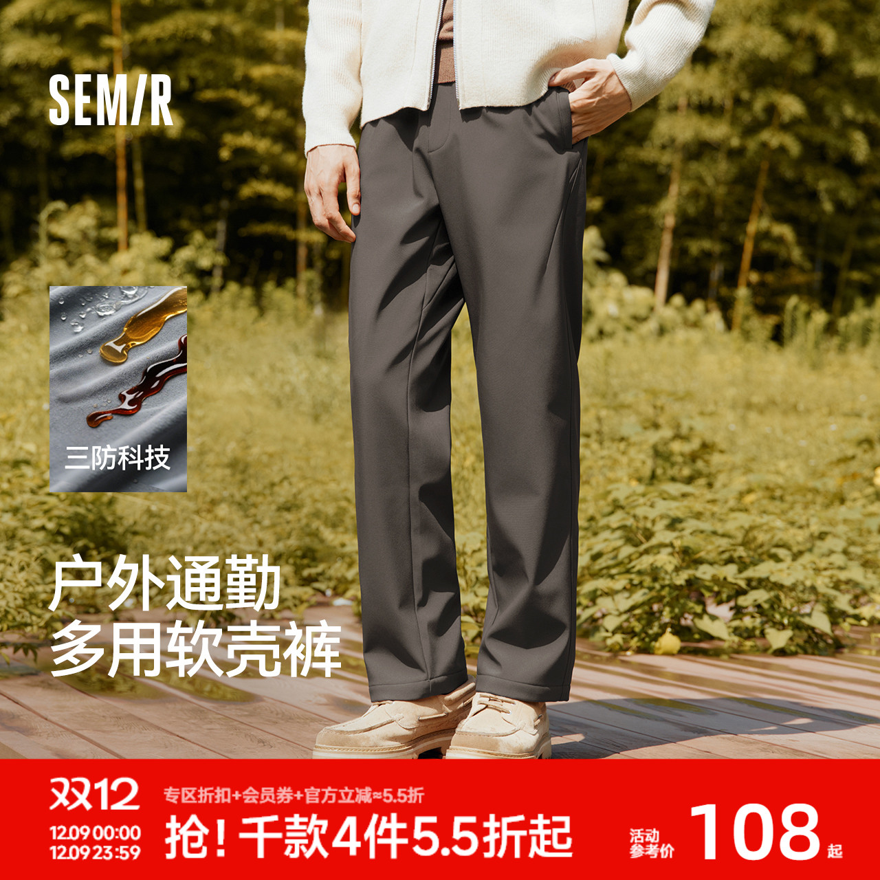 森马户外三防软壳裤男2025秋冬新款百搭加绒休闲裤运动通勤直筒裤