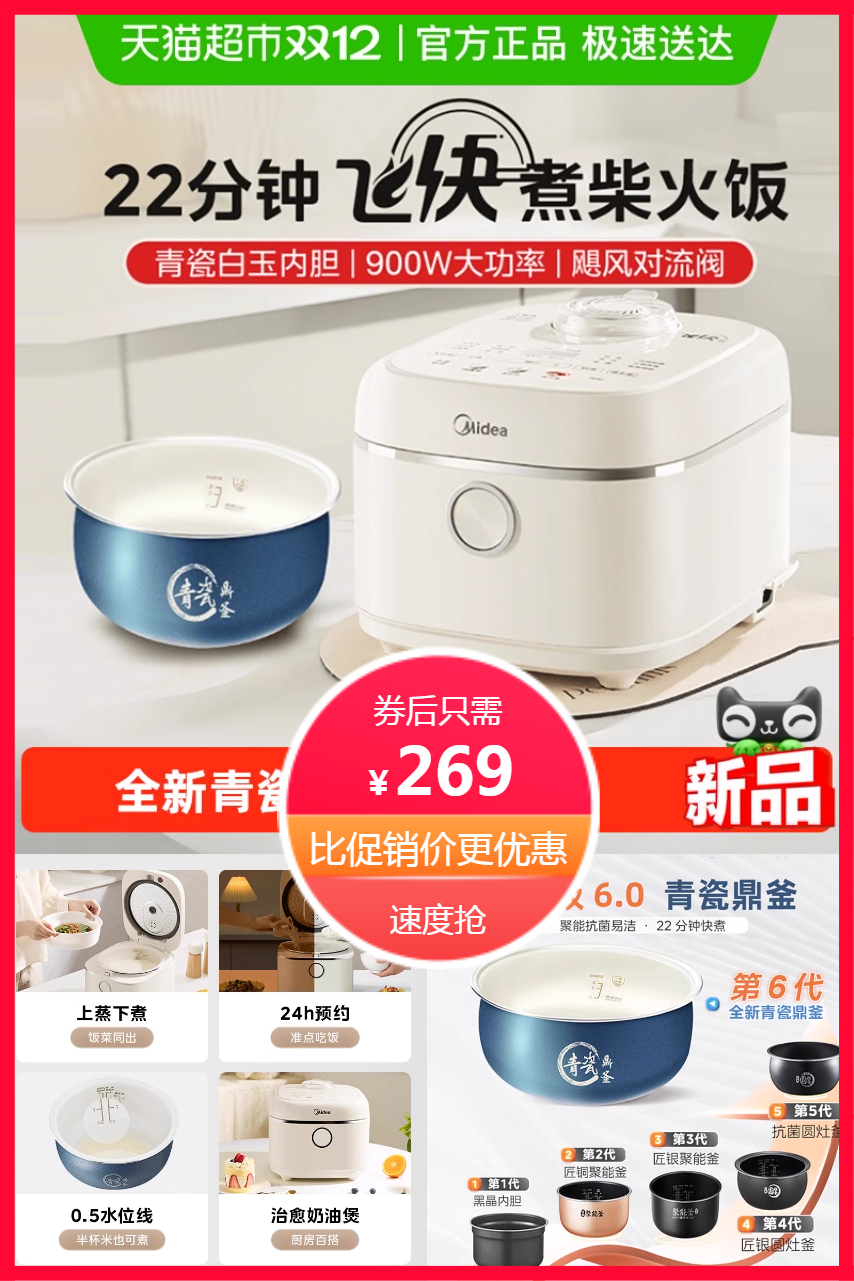 88vip+金币+平台卷+红包+晒评约178】美的飞快电饭煲奶油风设计!4升大容量,煮饭煲汤一锅搞定~美的正品家电,智能控火,一键烹饪,省时又省心!