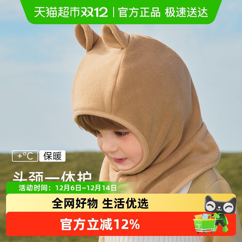 尼多熊婴儿帽子秋围脖一体宝宝毛绒帽防风护耳帽冬季保暖婴幼儿帽