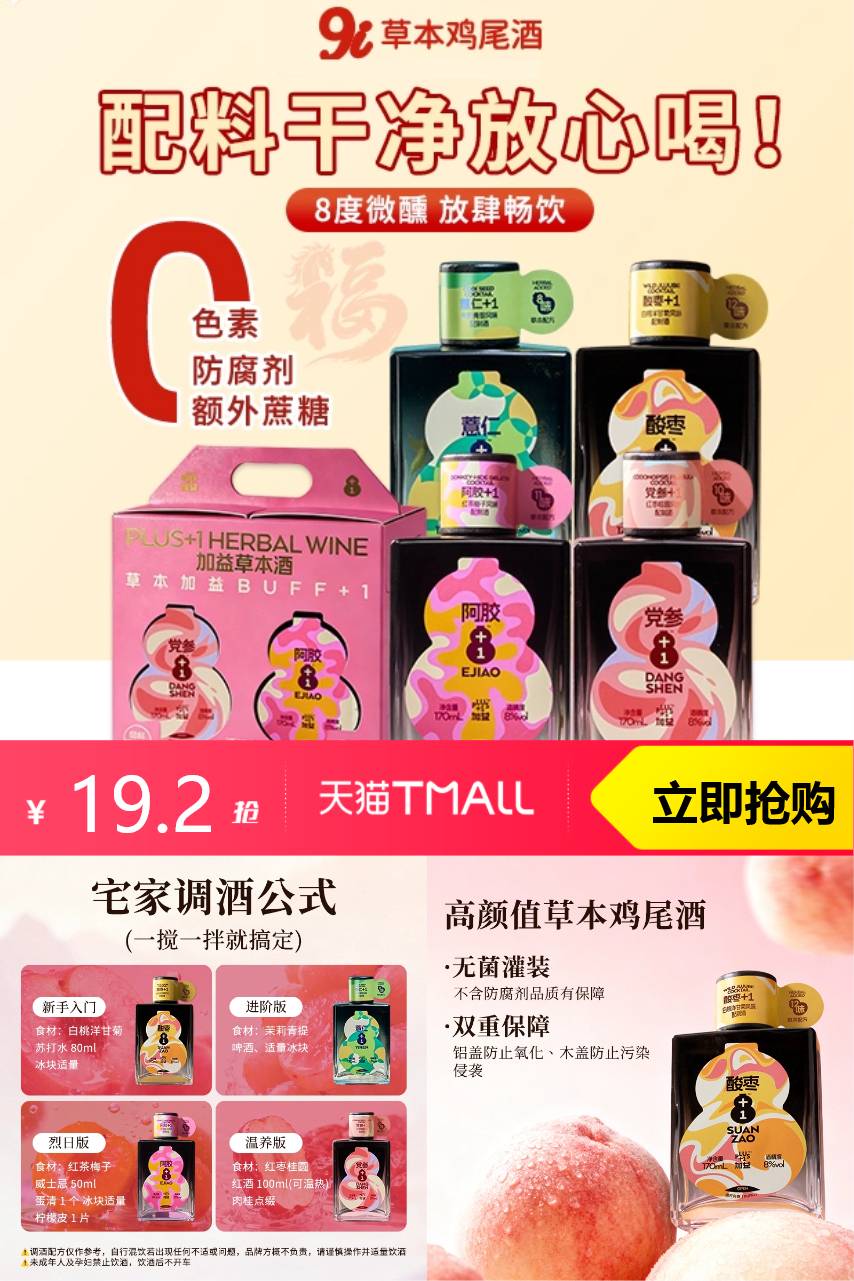 【满46减27.立减6.4,淘金币7.36,到手价11.84~ 拍两单到手4瓶,如想每款口味1瓶备注就行】非遗草本配方碰撞清爽果味,入口柔润不辣喉,低度数刚好适配下班独处、闺蜜小聚。