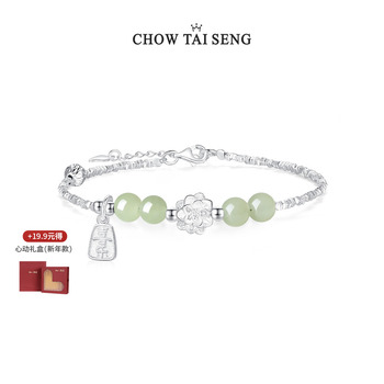 周大生福运莲莲碎银子手链,纯银女生和田玉国风手饰新中式生日礼物