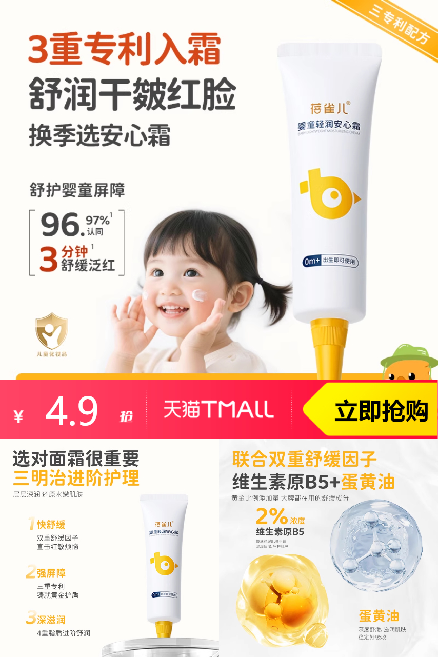 天然成分,有效保湿💧、滋润、修护。肌肤干燥、红痒不再来,妈妈们安心选!