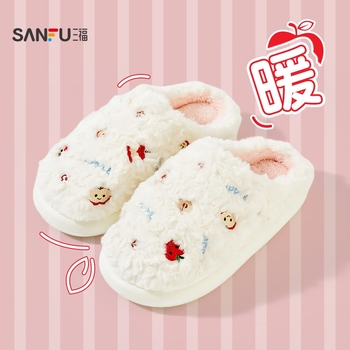 三福棉拖鞋苹果可爱保暖棉拖鞋,舒适不挤脚,细腻软绒里,不易掉毛,居家温暖相伴,做你专属暖宝宝~