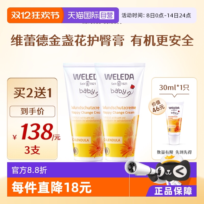 【天猫国际】维蕾德金盏花宝宝婴儿护臀膏,天然温和,有效缓解湿疹、红屁屁,让宝宝肌肤柔嫩如初。75ml两支装,赠同款30ml,超值好物,给宝宝贴心的呵护。妈妈们也别错过,给宝贝挑选一份安心的礼物吧!