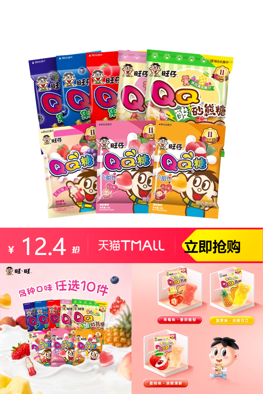 【拍10件立减4.8+淘金币0.8+入会立减1到手12.4元】折算下来每袋才0.7元,比超市省一半还多!果味超浓郁,Q弹有嚼劲,大人小孩都爱吃。酸甜不腻,追剧、解馋、哄娃全拿捏,独立小包装干净卫生。拍10件直接到手20袋,囤一次够吃好久,错过再没这价,赶紧冲!