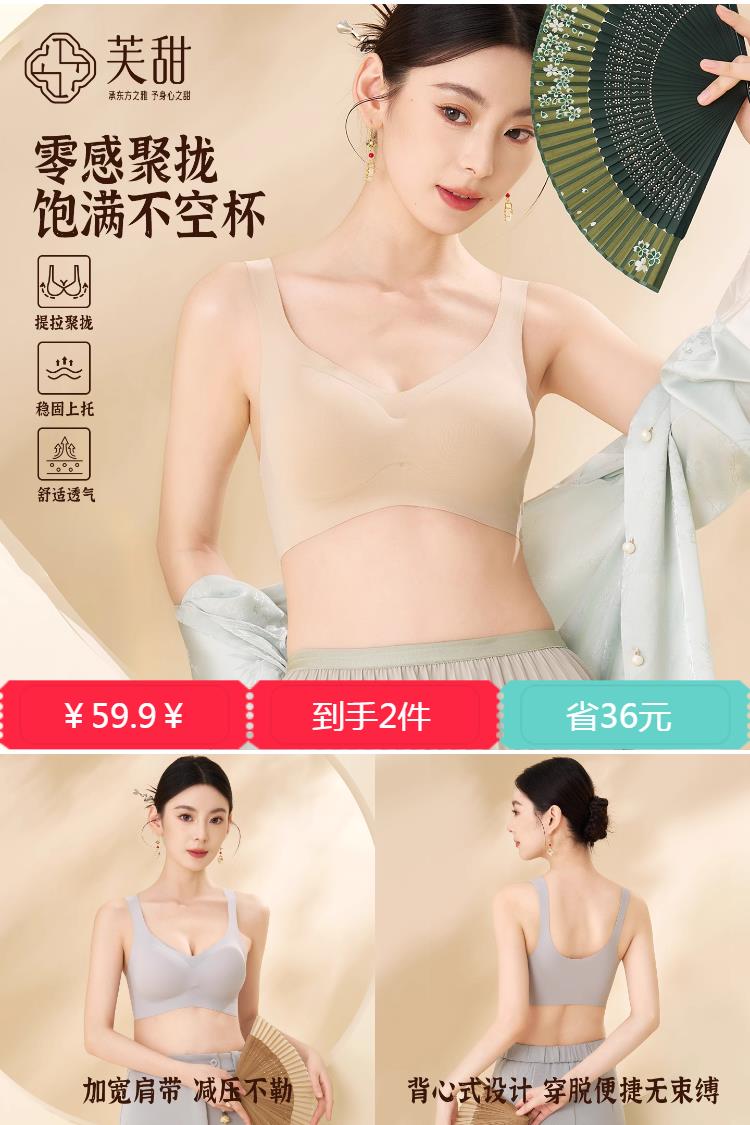 【凑200-10降温券54.9元/2件,多色组合可选】芙甜新中式无痕黑科技小胸文胸,聚拢收副乳、上托防下垂,背心式自在如裸感。