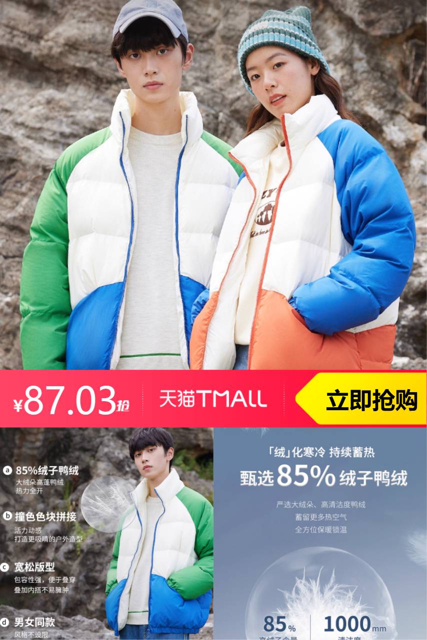 【立减50+淘金币11.97+叠加消费券到手76.15元】美特斯邦威25冬新款撞色复古潮流羽绒服,宽松版型85%鸭绒,高蓬松 御寒锁暖,男女同款暖冬户外 型格同频~