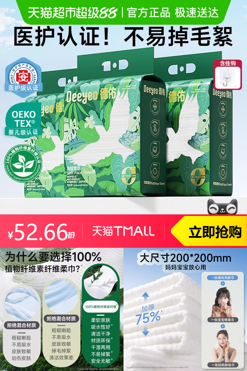【88vip+淘金币抵扣7.52+直播间红包5+直播间九折券5+政府补贴2.46=32.68,折合10.89/包】 韧性够够的,搓脸搓鼻子都不会破,连擦完擦台面都不烂!