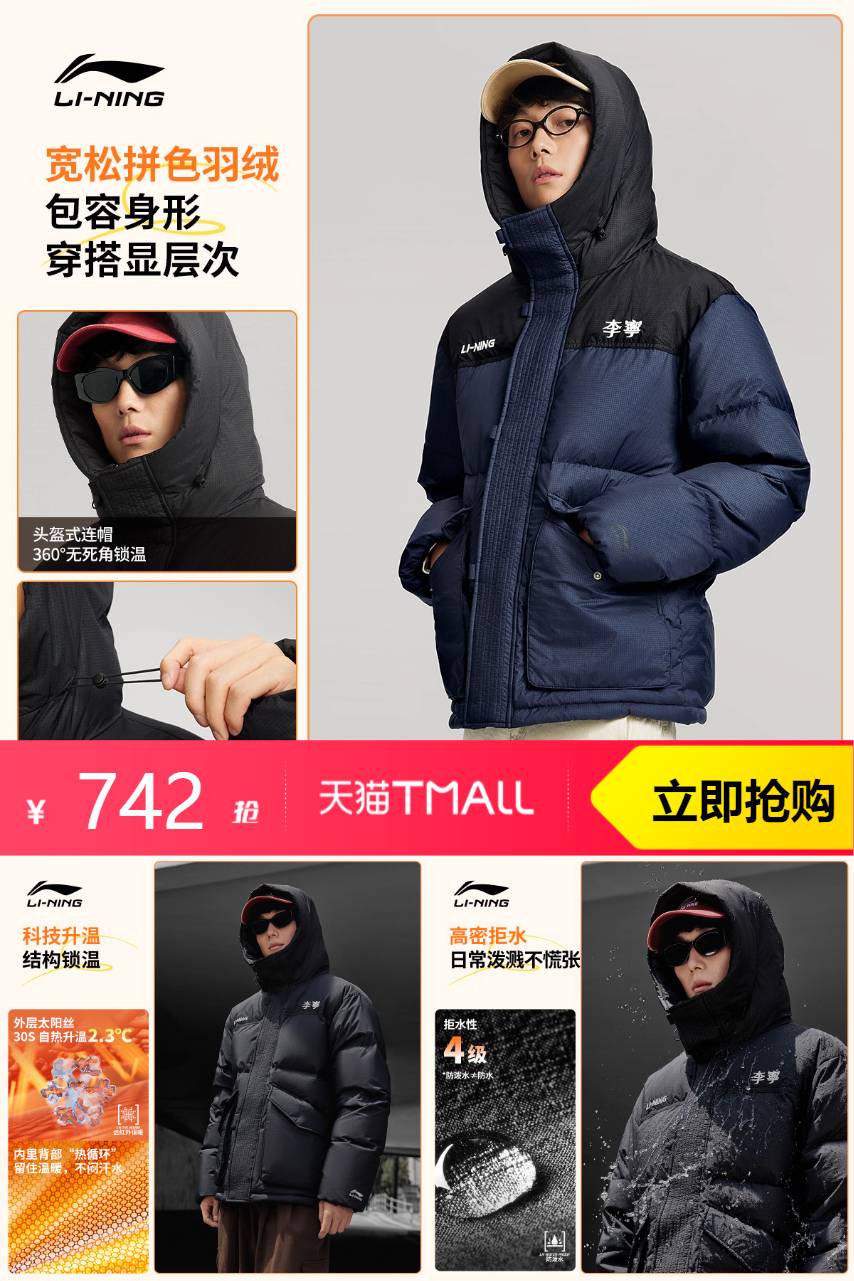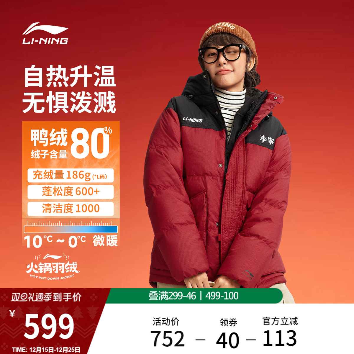 【淘金币抵扣22.56,叠李宁大额券1000-160,消费券,购物金等到手471左右】新年红!李宁火锅羽绒服丨情侣冬季短款,五明治结构,防护锁温又保暖。