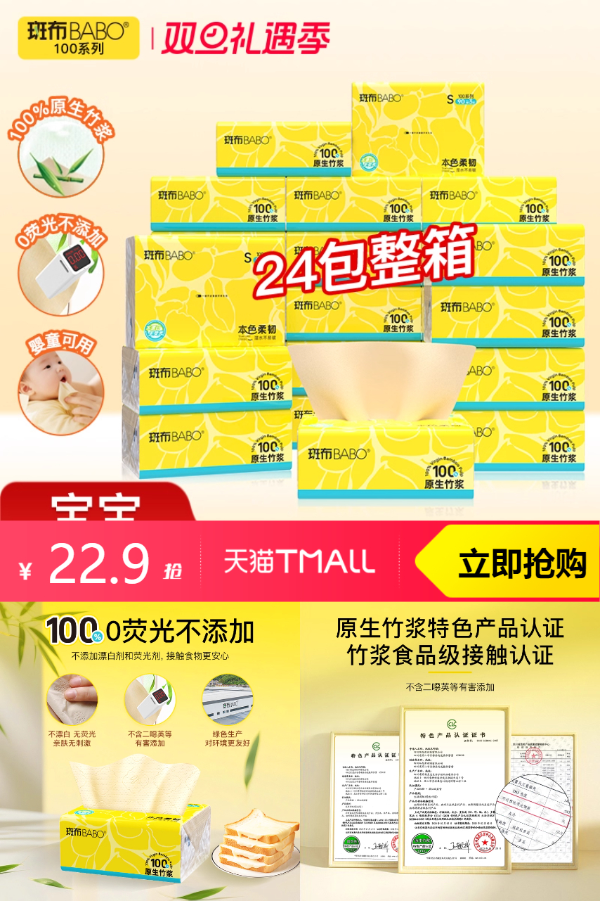 【淘金币抵1.19,到手21.71】原生竹浆,选用优质慈竹,无杂浆!湿水不易破!柔软细腻更亲肤!!超级适合日常使用!!