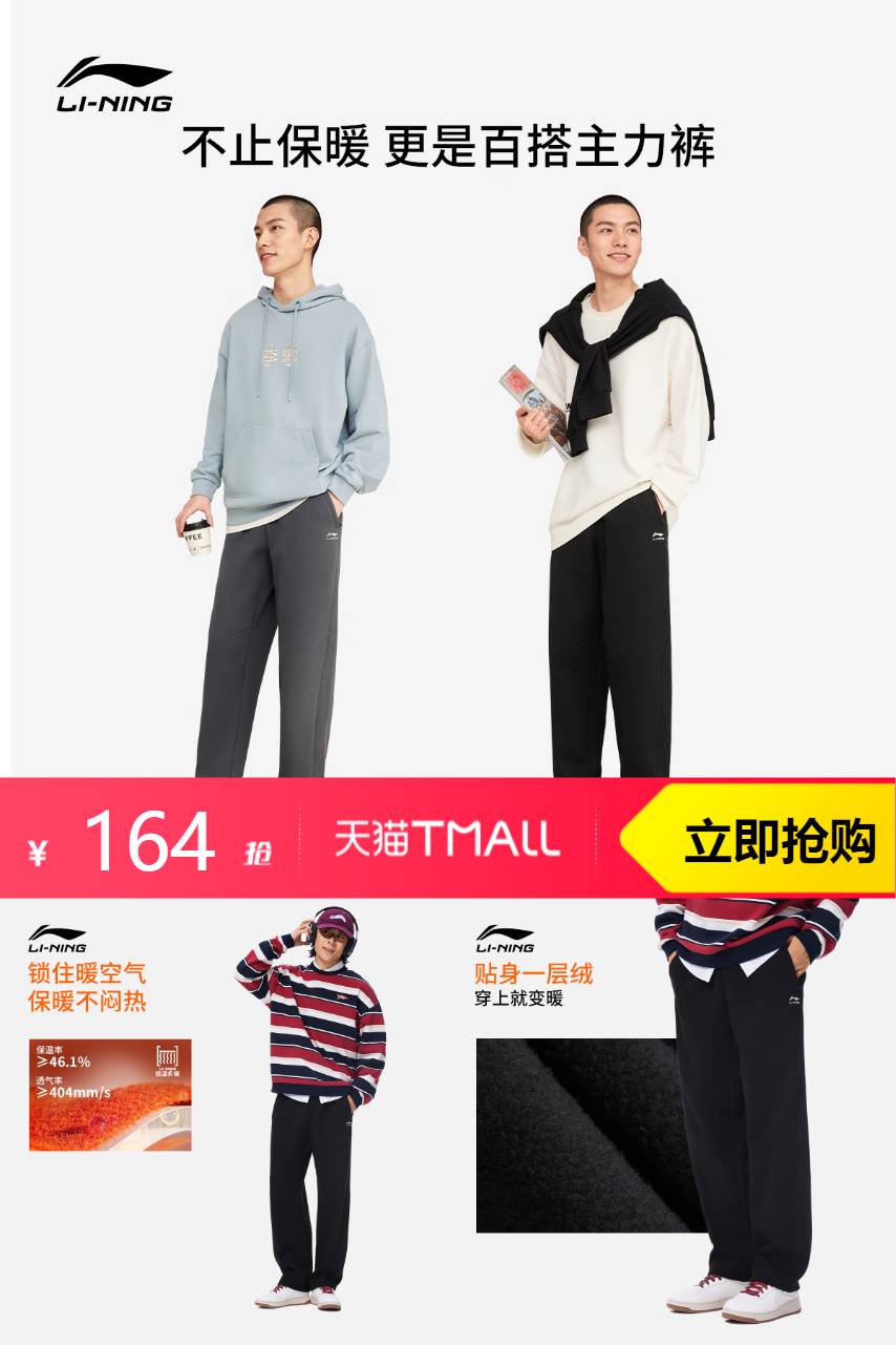 【淘金币抵扣4.92,叠李宁大额券1000-160,消费券,购物金等到手95左右】李宁热力裤丨卫裤新款男冬季黑色裤子,蓄热保暖,牢牢抓住“暖气”。