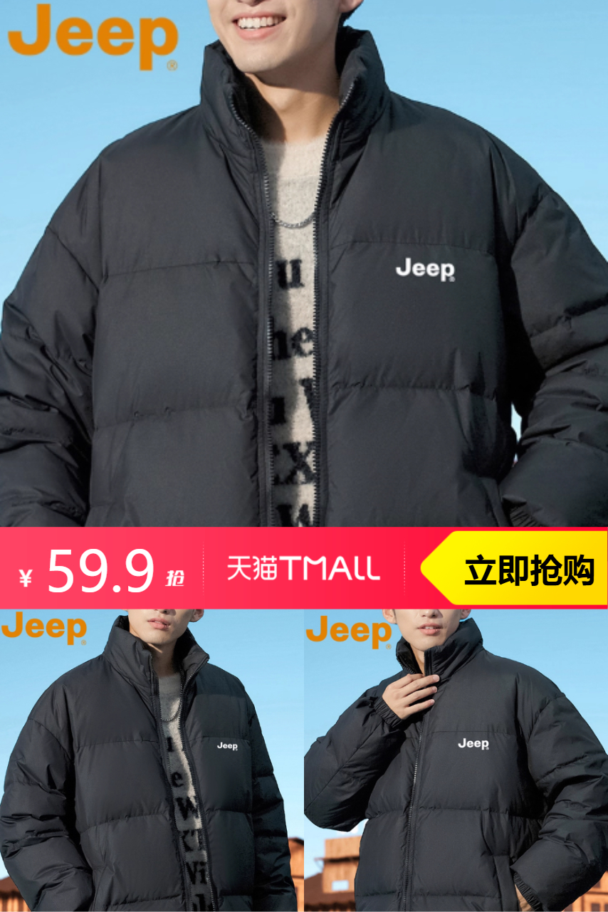推荐:Jeep吉普羽绒棉服男女同款立领面包服