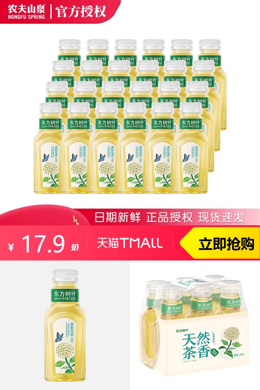 农夫山泉东方树叶茶饮料335ml*6,[小身材口袋装」随时随地畅享无糖生活,茶叶自然抽出不加一点茶粉~