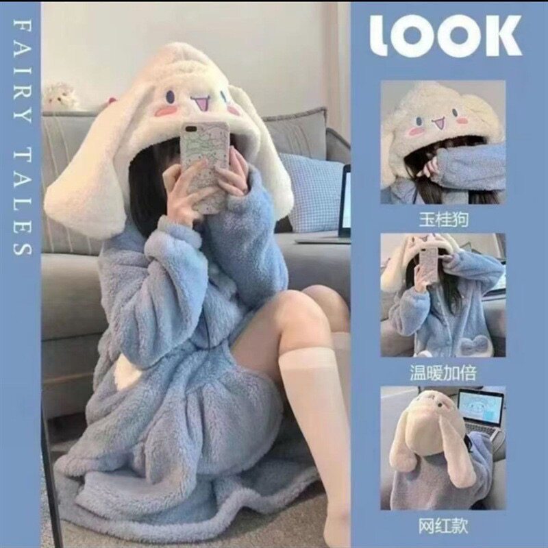 秋冬季珊瑚绒家居服网红款玉桂狗男女睡衣睡袍浴袍加绒鸭子家居服