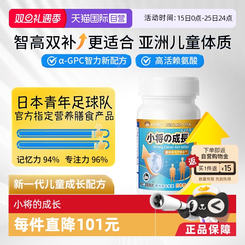 【自营】SUSUMOTOYA青少年赖氨酸成长胶囊6-18岁儿童骨骼生长营养