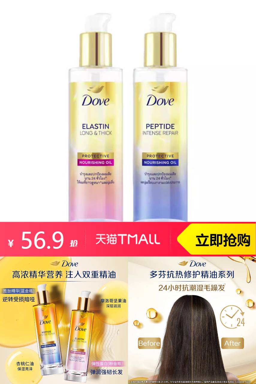 【可叠88会员立减13元+7元新品礼金(一般7-10元随机)+12.1淘金币到手56.9,凑88折消费劵50到手】头发毛躁不用愁,多芬护发精油来拯救!深层滋润,柔顺发丝,抗热修护。
